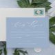 RSVP Simples de Casamento Azul Dusty Script Elegan