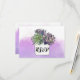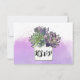 Cartão rsvp moderno e adorável de casamento/evento com água suculenta em um pote colocado contra fundo de cor d'água roxa decorado por pontos confetti de rosa dourado, perfeito para eventos temáticos de cacto. Sinta-se livre para entrar em contato comigo se precisar de ajuda para personalizar, precisar de mais produtos ou tiver uma solicitação de cor personalizada. **modelos coordenadas para este pacote de casamento podem ser encontradas na coleção mostrando abaixo ou colando este url no seu navegador: https://www.zazzle.com/collections/succulent_cactus_wedding-119744651622617721?rf=238919973384052768&CMPN=share_dclit&lang=en&social=true