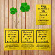 Cartão amarelo triplo para Ruas. Dia de Patrick que pode personalizar carregando as imagens dos seus produtos ou serviços, o logótipo da sua empresa, escrevendo o nome da sua empresa, endereço, número de telefone, correio eletrônico e Web site. Personalize-o e dê-o aos seus clientes ou clientes para cumprimentá-los esta Rua. Cartão triplo como material de marketing também para anunciar seus produtos ou serviços. Verifique a aparência de todos os lados depois de carregar imagens e digitar textos. Se a aparência lhe agrada, você pode colocar seu pedido agora. Se você precisar redimensionar e reposicionar as imagens e os textos para ajustado nesta placa triplicada, ajuste na ferramenta design. Você também pode alterar a cor do plano de fundo, a cor da fonte e o estilo da fonte na ferramenta design. Feliz Rua, Dia de Patrick! Desejando-lhe o melhor de sorte, alegria e mais vendas neste feriado.