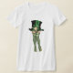 Rua, camiseta da mulher do dia de Patrick. Pontas irlandesas sobre pernas cortadas com chapéu.