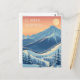 Montanhas de Ruas nevadas. Anton, Áustria, na Europa! Esperamos que esteja tendo umas ótimas férias de esqui. Este cartão-postal apresenta uma linda paisagem de montanha de cinzas azuis Em frente a um céu cor de laranja amarelo. Todas as frases de texto podem ser personalizadas para você!