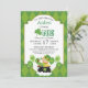 Rua, convite de aniversário do tema irlandês do Dia do Patrick para o menino ou a menina. O Invite apresenta um padrão de diamante verde, um duende de Dia de São Patrício solto sobre pote de ouro e balões de shamrock. É fácil personalizar com opções personalizadas.