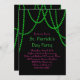 Camadas de miçangas verdes e brilhantes, cor-de-rosa, num fundo preto, decorem este convite divertido, fazer-o perfeito para uma Rua rico. Festa do Dia de Patrick.