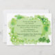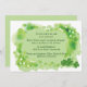 Este design tem um fundo branco e um centro abstrato de folhas e flores. O canto inferior direito abriga três xamrochas. É perfeito para uma Rua. O almoço do Dia do Patrick ou como convite de aniversário.O cartão é fácil de personalizar com seu texto, fonte, cor da fonte e escolha de seis tipos de papel.
