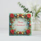 Festiva coroa de férias com poinsetos vermelhos, bolhas decorativas e sotaques de fita ouro, contra fundo vibrante, perfeito para designs da época de Natal, convites e cartões de saudação.
