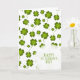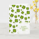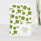 Rua personalizável. Cartão de saudação do Dia de Patrick com trevo sortudo de quatro folhas / molhos irlandeses em verde e branco. Você pode personalizar este cartão e alterar o layout, a cor do plano de fundo ou adicionar uma mensagem personalizada. Carimbos correspondentes também disponíveis.