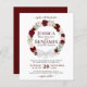 Estes belos convites de casamento são a escolha perfeita para a elegância rústica num orçamento. A mão pintada com design de aquarela apresenta uma coroa de rosas cor-de-rosa, arroxeadas, vermelhas e pinceladas com um arco de cetim branco. Barato e barato, esses convites combinam estilo bóho com classe e sofisticação.