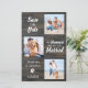 Deixe o seu melhor cachorro anunciar seu casamento com esta colagem de fotos de madeira rústica 'Meus Humanos estão se casando', e salve os cartões postais. Estes cartões postais de convite para casamento de orçamento precisam ser enviados como cartões postais de tamanho excessivo, de modo que podem incorrer em despesas de correio, mas não precisam de um envelope ou etiqueta de endereço de retorno. Personalize com sua foto favorita de noivado, foto de cão ou foto com o cachorro e personalize com nomes, data e local do casamento. Estes convites para casamentos de cães são uma obrigação para amantes de cães e mães de cães! COPYRIGHT © 2020 Judy Burrows, Black Dog Art - Todos Os Direitos Reservados. Rua do Orçamento 3 Foto Cachorro Salva a Data