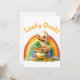 Convide seus hóspedes para uma celebração festiva com este adorável convite com um pato segurando um trevo de quatro folhas em um pote de ouro sob um arco-íris. Perfeito para a Rua, festas do Dia de Patrick ou qualquer reunião com sorte.