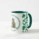 Comece seu dia com um pouco de sorte irlandesa! Esta Rua divertida. A caneca do Dia de Patrick mostra um gato malicioso vestido de duende, sentado sobre um pote de ouro, rodeado por um padrão festivo de shamrock. Perfeito para café, chá, ou qualquer bebida sortuda, esta caneca faz um presente excelente para amantes de gatos e Ruas. Entusiastas do Dia do Paddy. Adicione um charme felino às suas comemorações!
