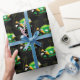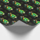 Feliz Rua. Papel de embrulho do dia de Patrick, este design tem ferradura preta, trevo verde, chapéu de duende e letra de tipografia