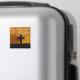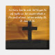 Mão pintada digital se mesclando do céu laranja, atrás da Cruz Santa.