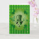 O cartão de saudação é uma Rua. O cão do Dia de Patrick e o shamrocks (ou quatro capas de folhas) estão desenhando. Dá um olhar vintage ou retrô com o verde. O cão de desenho animado tem a Rua. O chapéu de Patty. O padrão de arte fractal verde ao fundo.