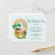 Rua. convite de festas do Dia de Patrick com uma ilustração adorável com um sorridente pote verde e ouro com um arco-íris fofo, uma nuvem feliz e um trevo verde.