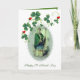 Personalize este belo cartão religioso vintage com uma bela imagem de Rua. Patrick, o Bispo da Irlanda, com vergonhas, corações vermelhos, e um dentro irlandês de benção. Uma pedra verde do shamrock aparece acima do verso. Todo texto e fontes podem ser modificados.