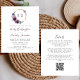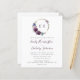 Esta design de casamento apresenta as iniciais da noiva e do monograma do noivo em roxo escuro, enquadradas por uma camada aquosa de flores roxas em um círculo de folhas falsas de ouro. Personalize o texto com os nomes dos casais no elegante roteiro de mão roxo escuro e os detalhes do casamento em cinzas de carvão. O verso fornece espaço para detalhes do casamento em um fundo branco sólido, junto com um código QR que os convidados podem digitalizar para visitar seu site e RSVP, o que economiza o custo de imprimir e enviar cartões RSVP separados.