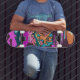 Personalize este produto com o nome do seu amigo ou amado por um toque pessoal. Este design legal apresenta um gato cruzando em um skate com uma vibração retrô. Perfeito para fãs de skate e amantes de gatos, combina cultura de rua com humor de forma divertida e na moda. Este design adiciona personalidade e diversão a qualquer produto, fazer-o ideal para aqueles que amam arte peculiar e única.