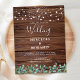 Convide amigos e família para o seu casamento com esta madeira elegante, mas rústica, com luzes de cordas e cartões de convite para casamento de eucalipto verde. Esses convites únicos de casamento de condados russos apresentam elegantes luzes brancas de cordas em madeira de celeiro com design botânico verde-verde. Personalize esses convites de casamento apressados com nomes, data de casamento e local. Veja nossa coleção de casamento para convites de casamento, álbuns de fotos de casamento, livros de hóspedes, presentes de festas e muito mais! COPYRIGHT © 2020 Judy Burrows, Black Dog Art - Todos Os Direitos Reservados. Rua Rústica do Orçamento Luz Verde Invit Casamento