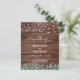 Convide amigos e família para o seu casamento com esta madeira elegante, mas rústica, com luzes de cordas e cartões de convite para casamento de eucalipto verde. Esses convites únicos de casamento de condados russos apresentam elegantes luzes brancas de cordas em madeira de celeiro com design botânico verde-verde. Personalize esses convites de casamento apressados com nomes, data de casamento e local. Veja nossa coleção de casamento para convites de casamento, álbuns de fotos de casamento, livros de hóspedes, presentes de festas e muito mais! COPYRIGHT © 2020 Judy Burrows, Black Dog Art - Todos Os Direitos Reservados. Rua Rústica Do Orçamento Luzes Eucalyptus Wedding Inv
