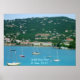 Rua. Thomas Sailboat - As veleiras descansam na calma água turquesa do Caribe no porto de Charlotte Amalie, Rua. Thomas, nas Ilhas Virgens dos EUA.