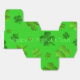 Caixas de trevo de quatro folhas. Dê favores verdes brilhantes nas Ruas. Dia de Patrick e coloque-as em caixas de papel dentro e fofo. O trevo verde escuro deixa caixas de cobrir que vêm em muitos estilos. O texto "Feliz Rua. Dia de Patrick" envolve o exterior da forma do cubo e é fácil de mudar para um aniversário ou outro encontro. O texto pode não ser exibido ou impressão no lugar correto em outros estilos - portanto, exclua-o. Perfeito para a celebração do feriado irlandês por uma criança ou por um adulto.