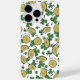 Esta Rua verde e branca festiva. A capa de telefone do Dia de Patty apresenta um padrão com moedas de ouro irlandesas desenhadas à mão e shamrocks verdes a tinta preta e a frase, "Sorte".