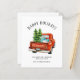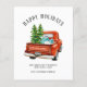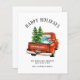 Ficha de Natal de Férias da Árvore de Natal, Feliz Caminhão Vermelho. Esta fazenda inspirou um design com um caminhão vermelho vintage com uma árvore de Natal e presentes de Natal no fundo. O cartão diz "Felizes Feriados" em uma simples tipografia mínima. Personalize facilmente com seu nome, ano e mensagem de feriado.
