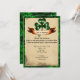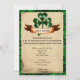 Esta é uma maneira divertida de convidar seus amigos e família para sua festa de Dia de São Patrício. O plano de fundo é verde com uma aparência de pergaminho para o texto. Há um shamrock celta no topo com uma faixa por baixo que diz, "Sorte o Irlandês". Seu texto fica bem abaixo em preto. Um convite festivo divertido.
