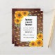 Uma parede de celeiro de madeira marrom rústica como fundo decorado com girassóis de cor aquática e um sorriso feliz de abelhas. Com o texto: Home Sweet Home. Personalize e adicione seu novo endereço e nome.