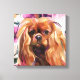 Estilo de Vintage, impressão de arte floral de cão cavaleiro 'Ruby' em cor doce suave. 12 x 12 polegadas