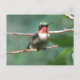 Fotografia de um beija-flor macho, garganta de Ruby, que está balançando suas asas enquanto se acomoda no seu galho após uma perseguição.