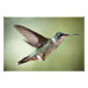 Asas largas, belas fêmeas de beija-flor-garganta-rubi congeladas em voo à distância.