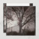 Design de Silhuette Grunge, Árvore Rastreada, no pôr do sol, numa cor de névoa roxa profunda com cerca no fundo. Tem uma silhueta de árvore com praias. Excelente outono ou design de outono.