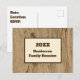 Reuniões familiares são ocasiões especiais que nos dão a oportunidade de fazer novas memórias com parentes distantes. Este anúncio de convite apresenta um design de grãos de madeira na frente, juntamente com um grande retângulo sólido que fornece o fundo do seu texto. A parte traseira deste cartão postal oferece espaço amplo para incluir as informações do evento. Todo o texto pode ser personalizado rápida e facilmente para o seu evento. Nossa coleção de reagrupamento familiar está crescendo constantemente. Se você está procurando algo especial, entre em contato conosco e podemos criar algo especialmente para o seu evento.