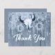 Este doce orçamento azul e empoeirado girassol ocidental.. Obrigado, carta chata é um excelente de obrigado para seus convidados depois do seu grande dia de casamento. Crânio de vaqueiro Rodeo com textura floral de chifres, madeira de celeiro boêmio, design. Procure produtos correspondentes nesta coleção. Imagem copyright Marg Seregelyi Fotografia.