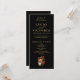 Este elegante programa de casamento apresenta um fundo negro dramático com um rico buquê de aquarela em ferrugem, laranja queimada e tons botânicos terríveis. O texto está maravilhosamente arranjado em um layout clássico, combinando a tipografia moderna com o encanto sazonal. O verso oferece espaço para os detalhes da sua cerimônia, festa de casamento e um obrigado especial para a sua mensagem. Perfeito para um casamento outono moderno com um sentimento rústico e romântico. Totalmente personalizável para combinar as cores do seu casamento e a sua redação.