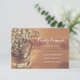 Um cartão de recepção RSVP de casamento. Design apresenta uma imagem de um cheio de jarro de pedras de flores do hálito de um bebê branco sobre um fundo de madeira.