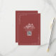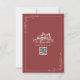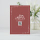 RSVP de Casamento com ilustração de celeiro rústico com fronteira botânica. O plano de fundo é vermelho-apagado. Personalize o texto e o código QR.