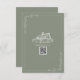 RSVP de Casamento com ilustração de celeiro rústico com fronteira botânica. O fundo é Sage Green. Personalize o texto e o código QR.