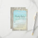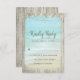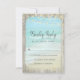 Inclua estas placas RSVP no seu Concurso Rustic Beach Wood. Uma cena de praia com ondas aqua azuis batendo contra a costa com spray branco, é enquadrada com madeira rústica e as luzes de cordas decoram o topo.