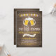 Cheers and Beers Surpreendem o 18º Cartão de Convite de Aniversário com fundo de madeira rústica. Para mais personalização, clique no botão "Personalizar" e use nossa ferramenta de design para modificar este modelo.