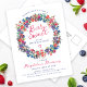 A tempo do Verão de 2024, a nossa nova marca de Verão de Berry Bliss. O patriotismo vermelho, branco e azul encontra-se com o Rustic Boho Chic. Morangos, framboesas e mirtilos de fundo branco criam uma vibração patriótica nesta coroa botânica de bagas. Berry Sweet está escrito em um roteiro vermelho divertido e casual que corresponde ao nome da celebrante de aniversário. O resto do texto é azul escuro. A parte traseira do cartão postal contém um endereço de devolução pré-impresso e espaço para uma mensagem.