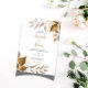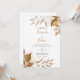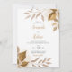 Este elegante convite de casamento rústico mostra tons quentes de terra com cor d'água castanho e folhas de ouro adorando os cantos. O layout minimalista emparelha a tipografia moderna com um roteiro delicado, perfeito para boho, outono, ao ar livre ou casamentos inspirados na natureza. Personalize facilmente seus detalhes de casamento para torná-lo realmente seu.