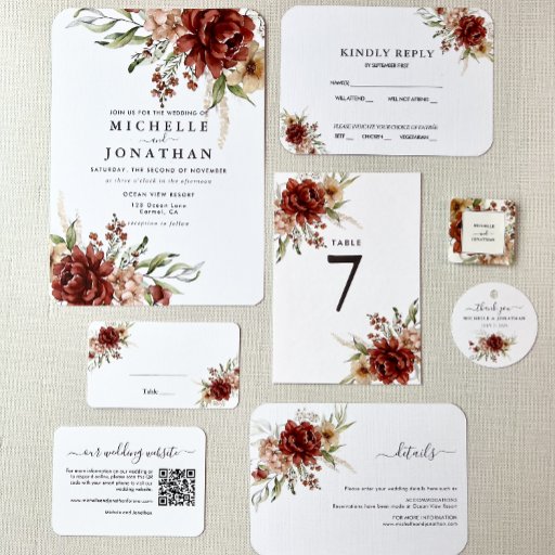 Um convite elegante para o casamento, com flores de aquarela em bege rústico, laranja queimado, tons sienna em fundo castanho. Se você precisar de alterações no design, como cor, texto ou fonte; entre em contato conosco em seamistmail@gmail.com. Adoramos fazer parte de suas memórias felizes.