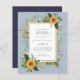 Bonito cor amarela Girassóis com folhas verdes de sábio e folhagem nesta papelaria de casamento.