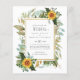 Bonito cor amarela Girassóis com folhas verdes de sábio e folhagem nesta papelaria de casamento.