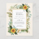 Bonito cor amarela Girassóis com folhas verdes de sábio e folhagem nesta papelaria de casamento.