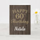 Rustic Brown e Glitter 60º Cartão de Aniversário Dourado com nome personalizado. Para mais personalização, clique no botão "Personalizar" e use nossa ferramenta de design para modificar este modelo.