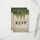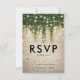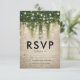 Cartões rsvp de casamento de conto de fadas mágico com fundo de tijolos de pedra rústico, videira verde com luzes cintilantes e uma modelo de resposta moderna.