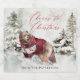 Comemore a época de Natal com rótulos de vinho espumante personalizados personalizados com seu nome ou outro texto desejado. Esta design apresenta uma cena de inverno nevado com um grande urso pardo vestindo um suéter vermelho de lã profundo na paisagem fria de neve. Árvores quentes cobertas de neve retratam uma terra maravilhosa do inverno. Uma bela fonte de estilo de vintage soletra as palavras "Saúde ao Natal". Essas etiquetas são uma escolha maravilhosa para criar presentes personalizados para amigos, vizinhos, família, clientes e colegas de negócios. É um presente de hospedagem bem pensado para comparecer a festas de férias ou cair em amigos e familiares durante o Natal.